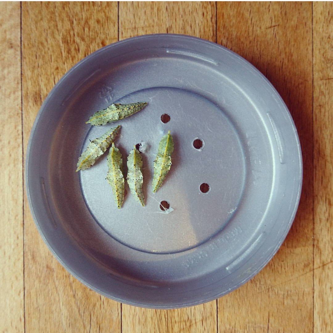 The caterpillars will eventually start climbing up to the top of the jar to turn into chrysalis. Again, the waiting game…