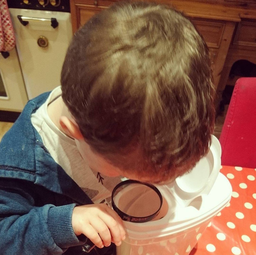 Okay, this is a bit of a slow burner so maybe name the caterpillars, read to them or move the jar around the house to give them a change of scenery. Remember to keep adding the food plant as they munch their way through it. You should notice that they get bigger, and they poo A LOT. I only mention the poo because well, I have boys and poo is apparently endlessly funny.