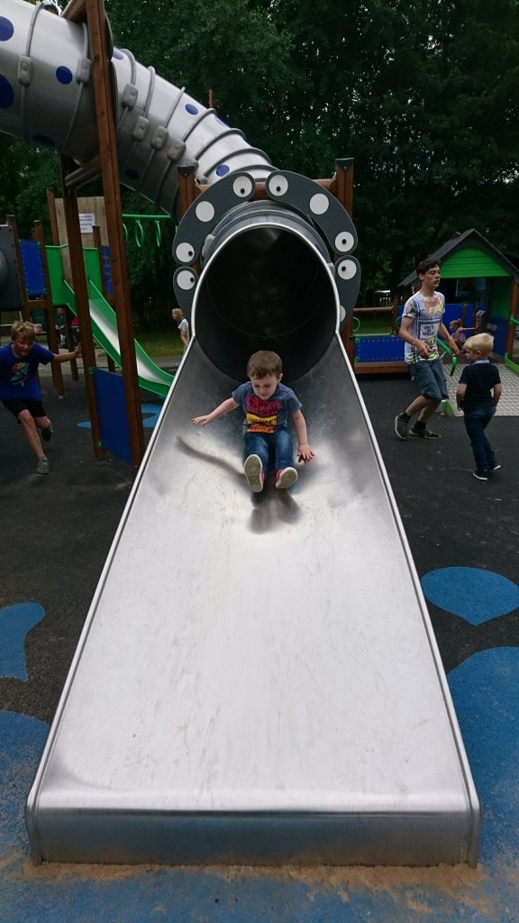 This slide has legendary status amongst the under 10’s. It’s a homemade affair that is positioned to go down a steep incline. It is fast, and despite having a mat at the bottom you come out and land with some force. I may or may not be talking from personal experience ha ha! I would advise an adult at each end if you have preschoolers!