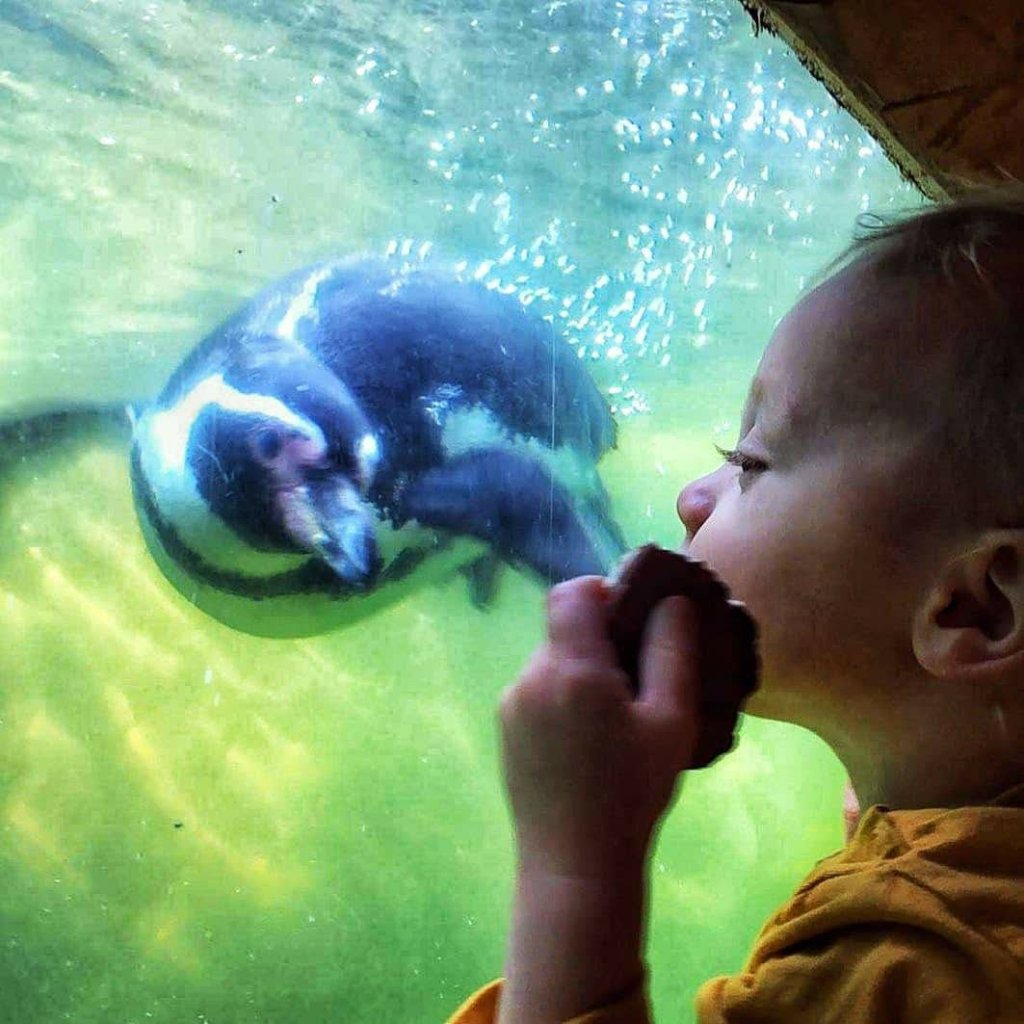A favourite with my boys is the penguin viewing area where you can watch them swimming under the water and diving for fish at feeding time. Tip – take some tinfoil with you and scrunch it up into a ball, if you move it around infront of the glass the penguins come over to investigate thinking it’s a fish!
