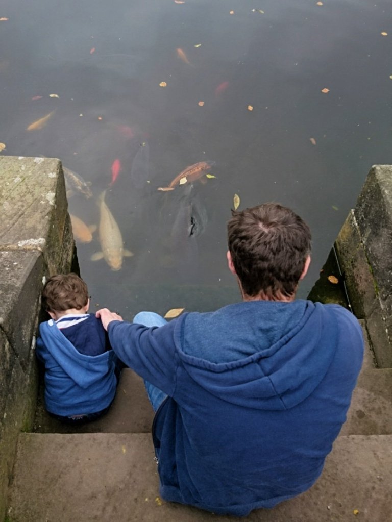 Another activity we enjoy is buying some fish food (available from the shop) and feeding the koi carp in the pond.