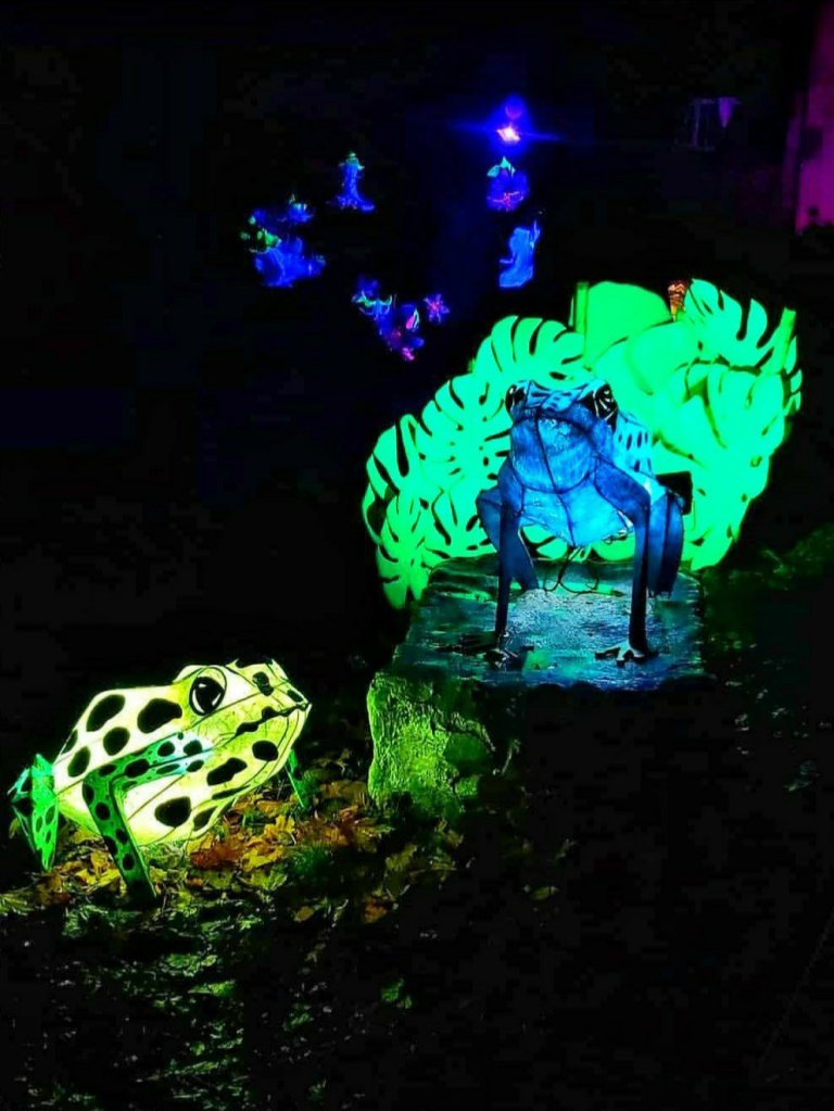 The old lion enclosure (the lions have been rehomed in their new purpose built enclosure which was completed in October) has been transformed into the Tropical Dreams landscape for amphibians and reptiles. Here we met some amazing dart frogs, chameleons and a huge snake who seemed to be happy nestled in amongst the vivid UV reactive ferns and flowers.