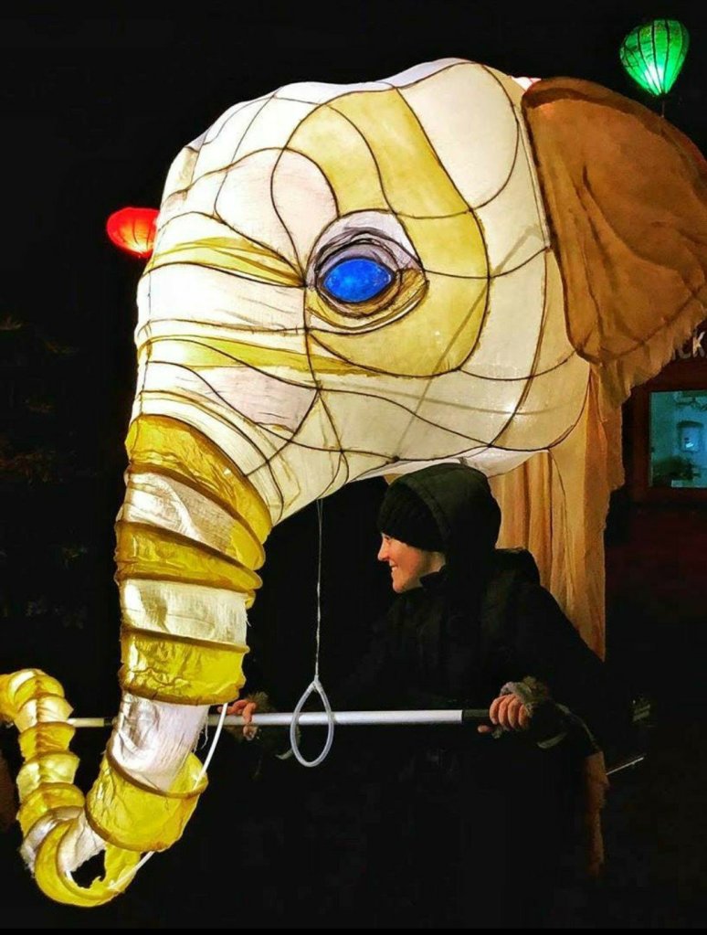 But our hearts were completely won over by the [new] elephants, taking the place of the penguins from last year as our favourites so far. James never even saw the people behind them, only the larger than life characters in front of him. They are so beautiful, enough detail to make them completely believeable but wonderfully lit and bright yellow in colour so that they’re also animals of fantasy.