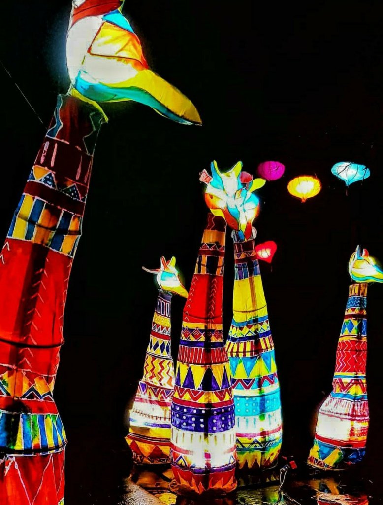 Shangri-la is an exotic oriental world of colour and striking patterns. Meander through a walkway filled with beautiful traditional batik lanterns and come face to face with aherd of lofty giraffes and a pair of gleaming elephants.