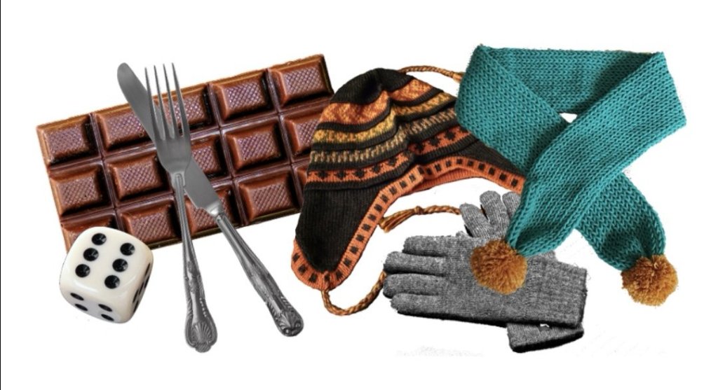 Start by grabbing a selection of winter clothing, jumpers, gloves, mittens, scarves, hats and even wellies! Then get a set of cutlery for each player. Finally you need a large family sized bar of chocolate.