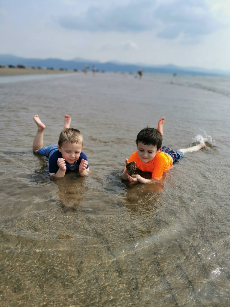 There are plenty of rockpools, as well as some interesting caves which our boys love to explore. A slipway provides access to the sands and most visitors tend to park on the beach, making it a popular picnic destination. There are both designated bathing and boat launching areas with a lifeguard on duty during peak times.