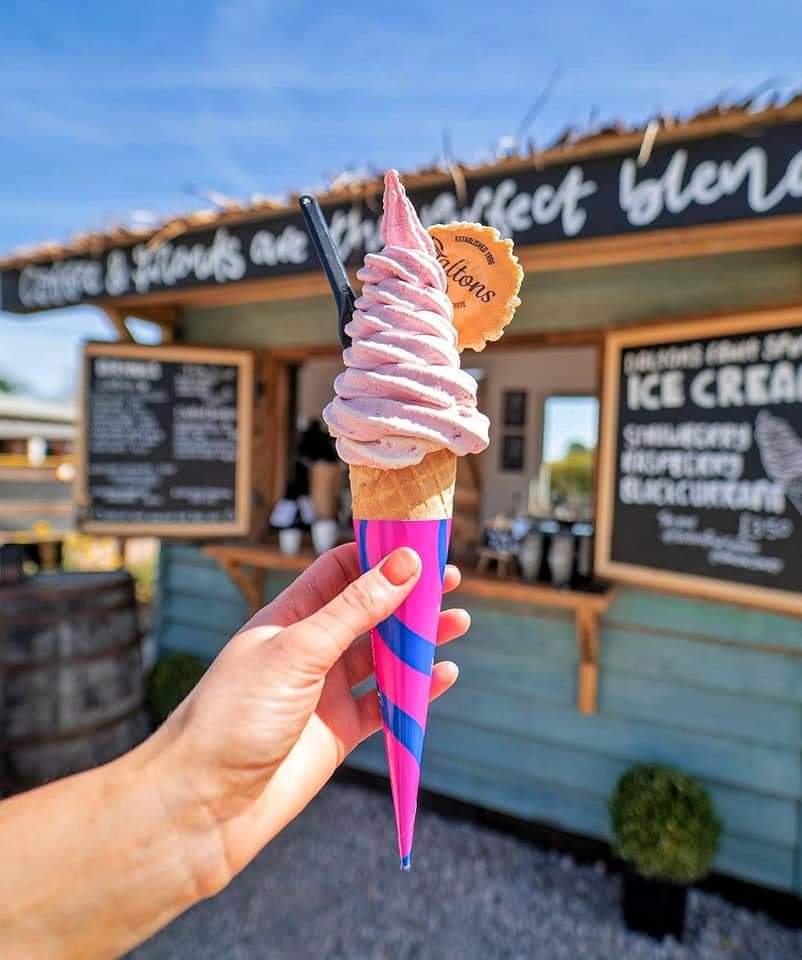 Serving delicious ice-cream made on site, the flavours are absolutely out of this world. Also a good place to stock up on camping essentials as the pretty shed based honesty shop stocks, milk, eggs and other local produce. In the honesty shop you will find small tubs of icecream and also larger take home tubs. The Hatch has recently opened serving coffee and the amazing fruit spinners – these are not to be missed! Fresh berries mixed into creamy vanilla ice-cream – beautiful! There are picnic benches, a swing ball and several farm themed ride ons out on the grass to keep little ones entertained. No toilet facilities.